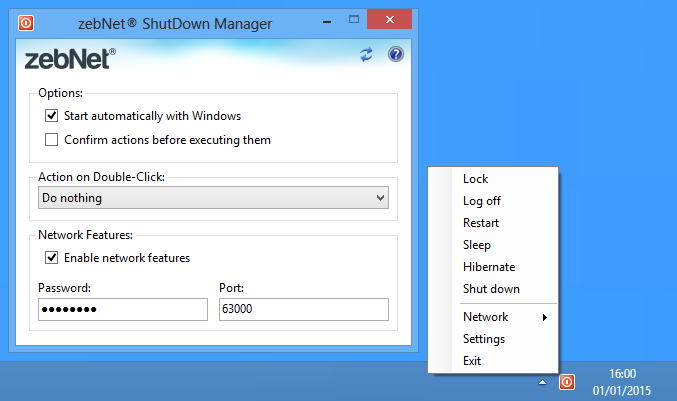 zebNet ShutDown Manager can automatically be started with Microsoft Windows and for security purposes, you can choose whether the action must be confirmed before executing or not.