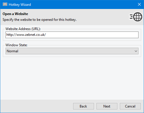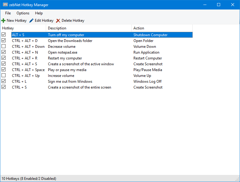Have a look at the screenshots to get a first impression of what working with zebNet Hotkey Manager looks like. Each image is only a thumbnail and you can click on an image to enlarge it.