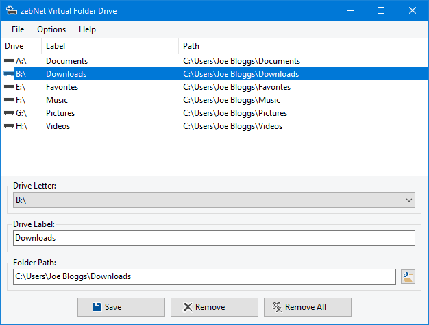 Have a look at the screenshots to get a first impression of what working with zebNet Virtual Folder Drive looks like. Each image is only a thumbnail and you can click on an image to enlarge it.
